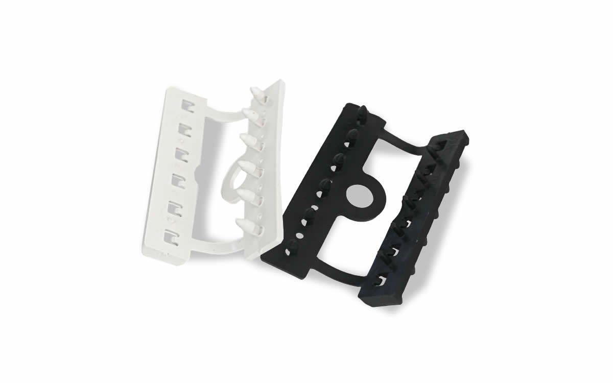 Los diversos modelos de plaquetas para la instalación de mallas de sombra, cercos de rafia, cercado de obras, barreras cortavientos, antigranizo, etc. Estos broches y prensatelas han sido desarrollados para cada uso y se fabrican con HDPE virgen, 20% de recuperado de primera calidad, polietileno de alta densidad, con negro humo concentrado para inhibir los rayos ultravioletas y Antioxidantes, para evitar la degradación por el tiempo en la intemperie, lo que garantiza su tiempo de vida útil de mas de 15 años.